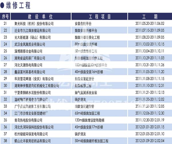 宏順建設(shè)工程有限公司是國(guó)家批準(zhǔn)成立的專業(yè)高空作業(yè)企業(yè):承攬過(guò)(國(guó)內(nèi).國(guó)外)煙囪新建、煙囪防腐、磚煙囪新建、煙囪改造、煙囪維修、煙囪脫硫防腐、煙囪拆除加高、煙囪滑膜等高空作業(yè)工程。具有“不搭腳手架 、 不需要停產(chǎn)”施工特點(diǎn)。